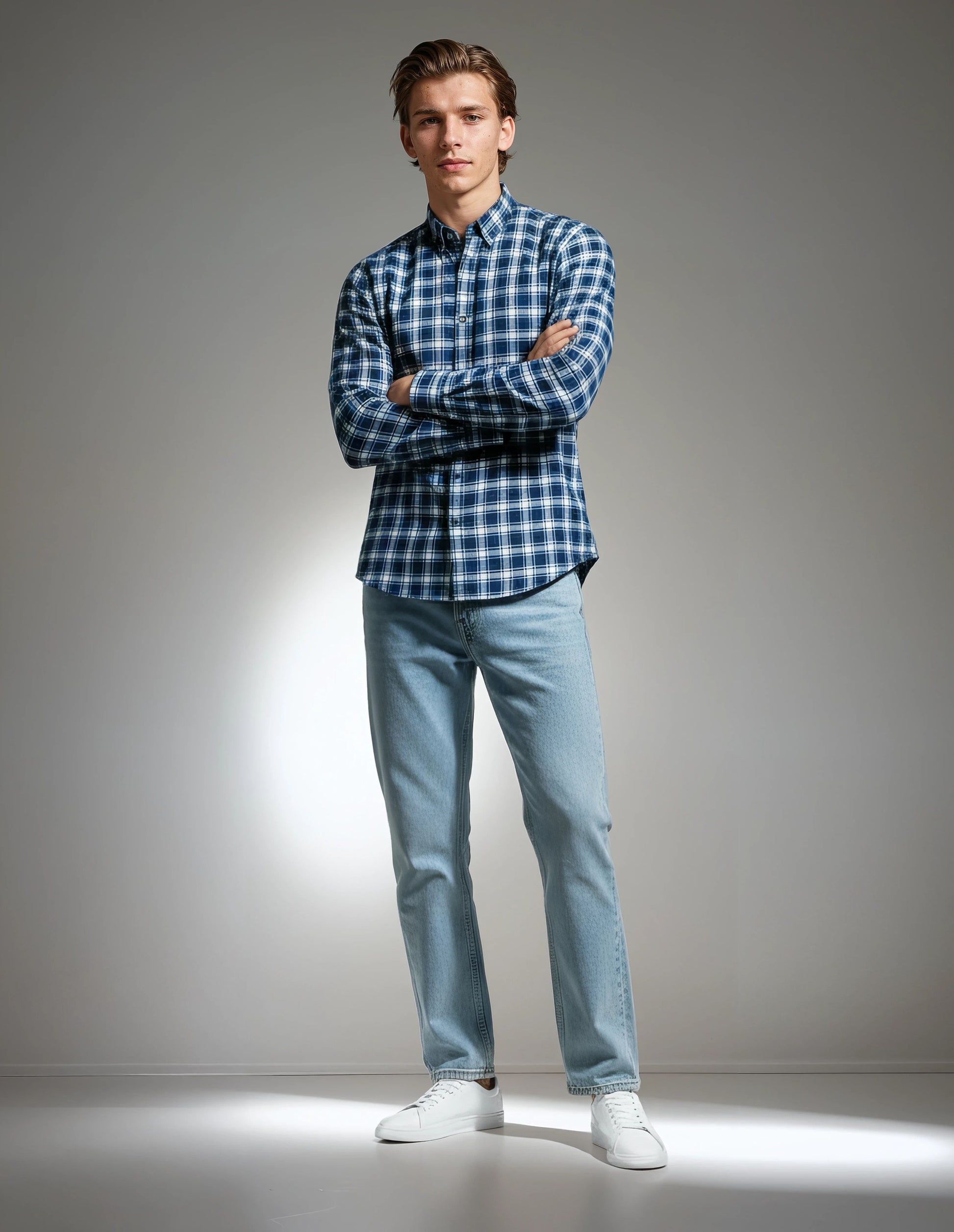 Camisa de cuadros 100% algodón cuadros leñador perfil amarillo